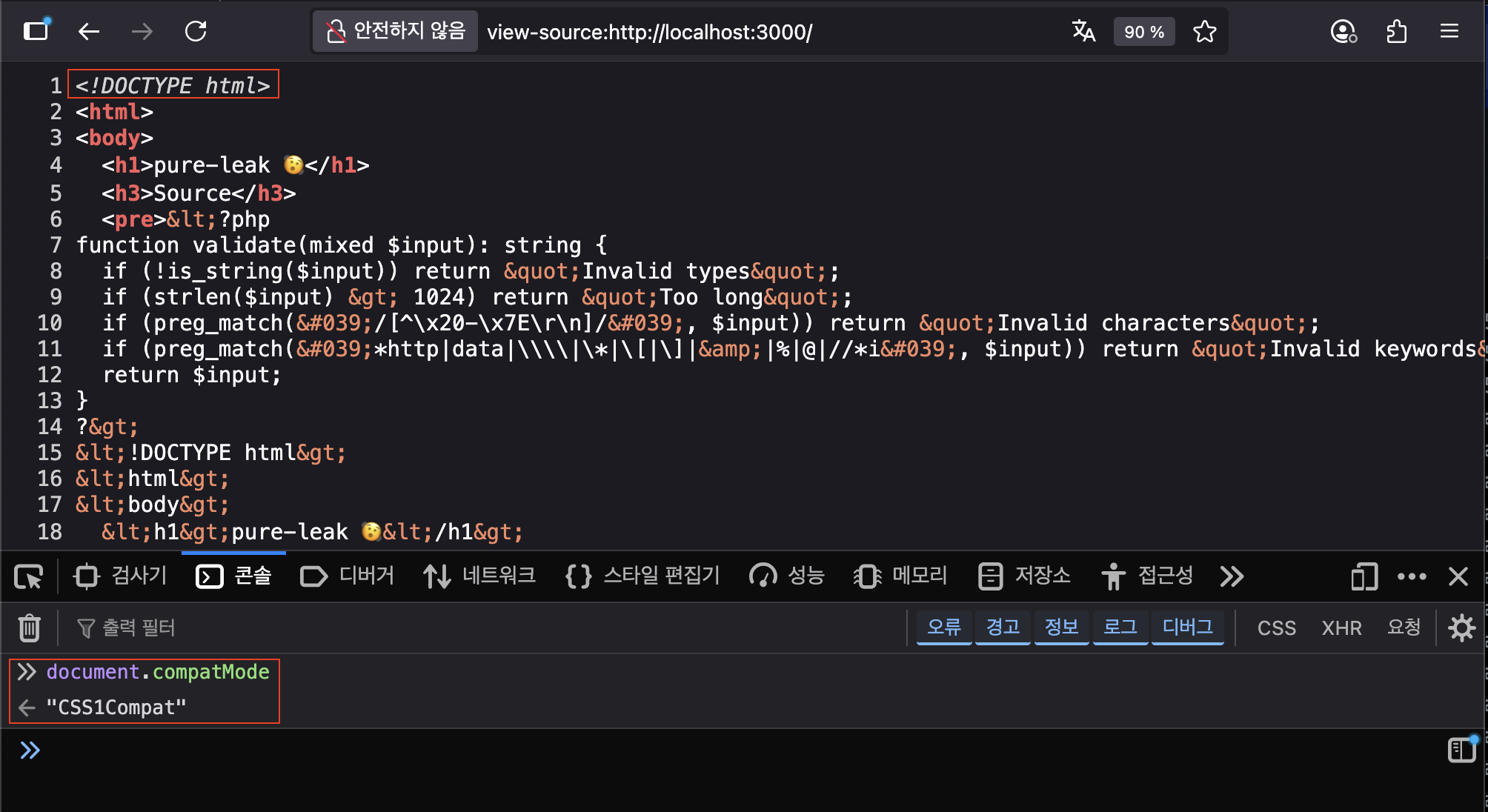 로 설정되어 있는 것을 확인할 수 있습니다. CSS1Compat